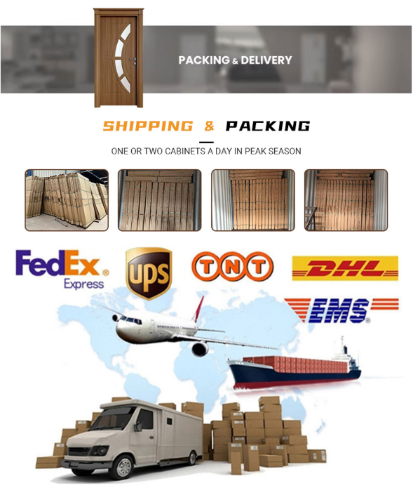 Підходить для стандартних розмірів 860/960 × 2050 мм, сумісний із місцевими врізними замками та петлями для легкого встановлення. Еко-сумісність з ЄС E1 підходить для житлових (квартири, вілли) і комерційних (офіси, роздрібна торгівля) використання, збалансовуючи економічну ефективність і довговічність.